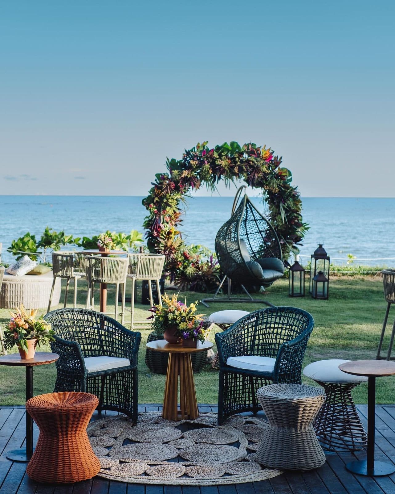 O projeto foi criado com base em linhas orgânicas, trazendo mais movimento e modernidade ao espaço e na integração dos convidados com a natureza, seja através dos móveis curvos e em madeira ou do paisagismo com arranjos florais desconstruídos.
